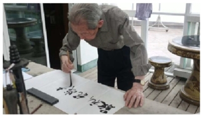 采访结束后,翟老还兴致勃勃地挥毫泼墨,为本报题词“敬礼!抗战老兵”以表支持。字如其人,雄强奇崛、苍劲老辣。衷心祝愿翟老健康永驻!