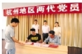 图为原杭州铁路分局副局长、现关工委常务副主任田云(右)与杭州供电段检修车间青年工长金昭明,在上海铁路局团委和杭州办事处领导见证下,签订结对协议。陈慈林 摄影报道