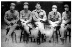 | 托勒特(中)伤愈归队,临行前与浙东游击纵队领导合影。 |