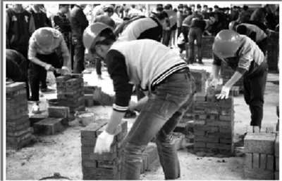 比赛开始了,看,建筑专业的选手,弹线、摆砖、拌灰、检验,有模有样(上图);测绘选手,定位放线专心致志,边测量边记录边计算(左下图);CAD选手两眼注视着电脑屏,而双手却在键盘上飞走,完成了一幅幅工程图;汽修专业的电器、钣喷、排故选手,或拆解,或严修,或安装,每一步都精准到位(右下图)……