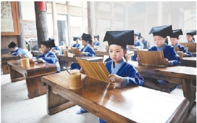 近日,临安市清凉峰镇洲头小学的学生们在朗诵《弟子规》。该小学开展“学忠孝礼仪迎接六一”活动,通过朗诵《弟子规》、行拜师礼等形式,让孩子们感受传统文化的同时,引导他们崇尚勤俭廉洁、忠孝礼仪的美德。胡剑欢 摄