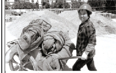 每天从早上6点到晚上5时30分,除了中间的半个小时休息外,曹阿姨的工作就是将建筑垃圾一车一车地从工地上推到旁边专门的垃圾区。“工地嘛,就是这样的。灰尘啊,材料啊,弄起来很累。”