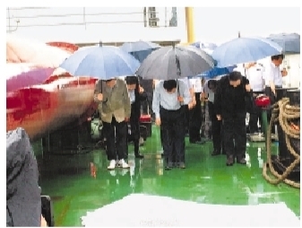 6月3日上午,李克强总理及随行人员向“东方之星”沉船遇难者遗体三鞠躬并默哀。新华社发
