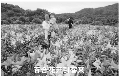 据种植户王勇介绍,他于去年从四川引进花、叶、球茎均可食用的甜百合,在海拔200多米高的照谷村承包了30多亩地开始种植。利用桐岭水库得天独厚的自然环境,这里的百合花长势良好,预计8月份可采收,市场价每公斤近百元,经济效益可观。
