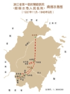 ●民国31年(1942年)5月,日军为掠取军需资源,特别是优质莹石矿藏,发动了“浙赣战役”。调集4万兵力,从萧山、绍兴出发,把侵略矛头直指金华、衢州,于5月中旬沿东阳、永康包围金华、兰溪。省政府从永康方岩撤往云和县城。省卫生处从永康县城撤往云和县。省立医院从永康县城郊水公山撤往景宁县。第三辅助医院从武义县撤往景宁县沙湾。