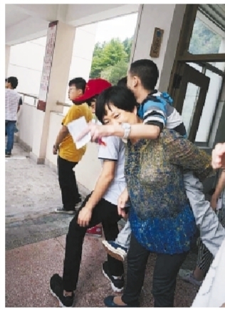 接近6点,韦慧娟给儿子穿好衣服,帮助洗漱后背着儿子到教室早读。为了照顾他们,学校给了韦慧娟一个单独的房间。房间离开教室约200米的距离。这段路程,韦慧娟走了已经整整3年,一步一步都是那么熟悉,道路上、教学楼里有多少台阶她都记得清清楚楚。但是这几天有些不同,因为是高考,韦慧娟比儿子还紧张。暴雨中,儿子撑着雨伞,韦慧娟一脚深一脚浅地走在雨中。