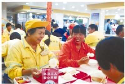 昨日清晨6时许,建德市新安江环卫所城东管理站的保洁员谢军来到新广场旁的“莘食客”店里,选择了面包、包子、油条及稀饭,美美地吃了顿早餐。据悉,“免费早餐工程”是该市政府首次落实40万元专项资金,为270多名一线环卫工人提供用餐。从此以后他们不仅享受赠送价值5元的早餐券,还可以免费享受豆浆与稀饭优惠待遇。