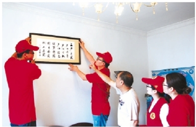 当日,该社区的党员志愿者将一块块“三严三实”为内容的装裱字匾赠给社区的26个普通党员家庭,不仅增强他们的党性修养与文化氛围,同时也可作为家训传承给子女。宁文武 摄