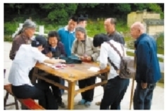 图为胪膛邮政支局工作人员进村入户,方便年老体弱人员按时认证。