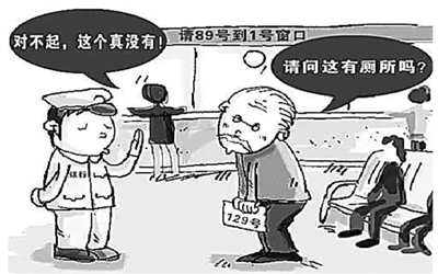 银行排队等上一两个小时的事并不鲜见,这么长的时间里难免会遭遇尴尬的内急问题,但人家银行里的厕所就是不对外开放,即使你是他们的储户,是他们的服务对象。