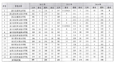 | 附表1:2012年~2014年在杭高职院校投档线对比表 |
