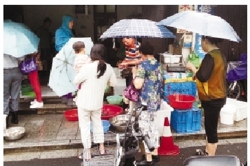 昨天上午,在杭州察院前巷一个卖水产品的摊位前,3位买菜人分别穿着毛线衣、汗衫和秋衣,仿佛穿越了春、夏、秋3个季节。
