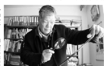 | 谭启晓正在察看底片资料。 陈慈林 摄 |