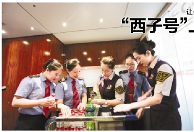迎着朝阳,执行每天早上8:30从杭州开往北京的列车任务的G32次高铁列车,又一次准确、稳当地停在了预定位置,等候开始新一天的旅程。有28年历史的 “西子号”乘务组曾获全国“五一劳动奖状”,与全国劳模陈美芳一样,是杭州客运段的服务名牌,所不同的是,陈美芳团队值乘的是杭州至广州的快速列车,“西子号”值乘的是杭州至北京的高铁列车,作业程序和服务规范都有一定区别。