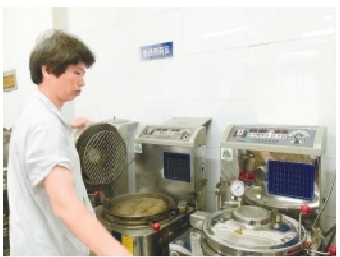 还没走进煎药室,远远地就能闻到一阵中药的味道。打开煎药室的大门,一阵热气扑面而来。一位正在忙碌的煎药工转头笑着对记者说,“里面跟蒸桑拿差不多吧,现在有没有觉得,还是待在外面太阳底下凉快?”