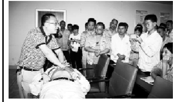 讲座中,专家讲授了中暑、溺水、扭伤等13类疾病的急救方法,以及特别注意的事项。讲座最后,急救专家还进行了心肺复苏急救的现场模拟演示。
