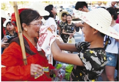 值得一提的是,他们大都是博伟“小候鸟”夏令营营员们的家长。就在他们挥汗大干的时候,他们的孩子,一群快乐的“小候鸟”拿着毛巾和纯净水来“慰问”了。一位妈妈在儿子为她细心擦汗时,感动得眼泪都落下来了(上图)。随后,爸爸妈妈们还带着“小候鸟”拾捡路上的垃圾。在快乐的互动中,“小候鸟”们和他们的父母一起学会了感恩。感恩,不仅可以让世界变得美丽,更能让彼此拥有爱心……记者周金友 摄影报道