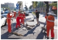 昨天早晨7点,杭州博伟环境工程公司的30位共产党员、环卫工人,在忙完清晨4点起的第一波道路清扫工作后,顶着烈日开始义务清扫杭州三墩一条尚未交付使用的道路——灯彩街(下图)。