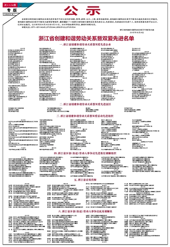 一、浙江省创建和谐劳动关系暨双爱先进企业