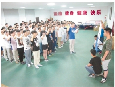 106名大学毕业的新职工面向局旗庄严宣誓:“爱国爱路,敬业爱岗;遵章守纪,按标作业;尊客爱货,优质服务;增收创效,勤俭节约;团结协作,令行禁止;勤学上进,技能过硬;明礼守法,诚信友善;实干创新,追求卓越,为铁路事业发展努力奋斗!”陈慈林 摄