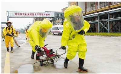 本报讯 通讯员余昌龙、马佳佳 记者吴晓静报道 “立即启动化工事故应急处置预案!”近日,为提高消防官兵处置化工事故灭火救援能力,坚决预防和遏制重特大尤其是群死群伤火灾事故的发生,绍兴市公安消防支队在杭州湾上虞经济技术开发区的浙江绿科安化学有限公司举行化工事故实战演练。