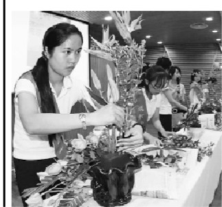组合刚成立的时候,九姐妹中只有薛慧萍、赵阳与钱圣雅此前有插花基础。薛慧萍告诉记者,九姐妹多次在业余时间抽空聚在一起练习,互相切磋技艺。薛慧萍她们3个“老师”,总是鼓励其他6位没有多少插花经验的姐妹,先凭各自的感觉大胆地插,然后再对她们的作品进行点评:不同花材的位置摆放应该如何修正;初学者不宜使用过于复杂的色彩,而应该尽量清淡一些……
