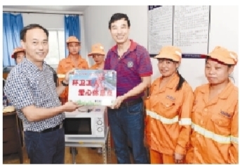 昨天中午,浙江省建设建材工会特意带着工会的关爱,来到博伟环境公司杭州拱墅区宝庆桥环卫工人歇脚点,设了一个“环卫工人爱心点”。几位环卫女工高兴地说,“工会太好啦。特别是微波炉、电水壶,很管用。我们这一片,清扫道路的环卫工人有70多位呢,以后每天可以来这里加热饭菜,喝口热水了”。