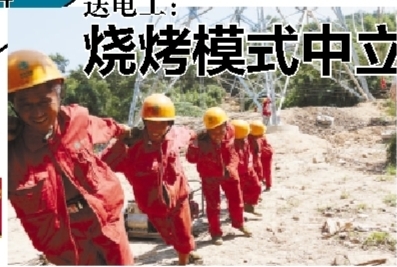 张彪队长指着已经架好的铁塔告诉记者,40米高空,有块一两个平方米大的作业平台,工人们早上5点半上去,得到中午11点才下来吃饭,等到下午3点以后再上去,到晚上7点下来。“那上面的温度,我们用红外测温仪测过,在72℃左右,打个蛋两分钟就熟了。”张彪说,“他们操作时带着很厚的手套,要不然手根本没法接触铁塔和导线。”