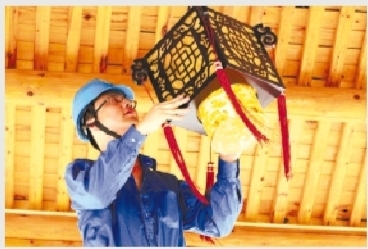 图为电力“红管家”褚少江为岔路镇干溪农家乐检查照明灯具。今年干溪农家乐整改后,是褚少江第一个上门,从线路布局,灯具安装到每个开关插座的设计,他是一路把关,不仅提高了用电安全,也减少了费用的支出,真是把服务用到了心坎上。
