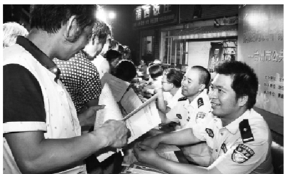 8月19日晚上,台州市公安局黄岩区分局城北派出所会同法制大队,在辖区北城街道浦西村开展“警务夜市”活动。夜市上,民警通过摆放禁毒展板、发放防范资料、法律咨询等形式,向村民和外来务工者宣传防骗、防盗、防抢以及禁毒知识,提高广大群众的“心防”意识,吸引千余名群众参与。通讯员蒋忠慧、汪敏 摄影报道