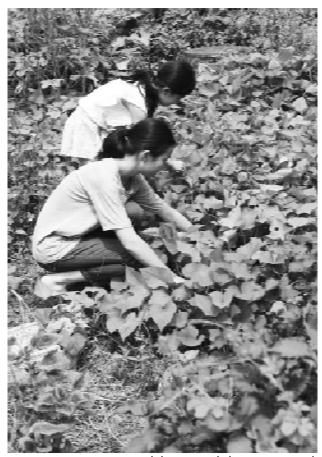 | 懂事的姐姐,带着妹妹到地里摘菜 |