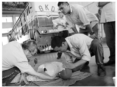“通畅气道、口对口人工呼吸、胸外按压,每做30次胸外按压……”近日,浙江巨化集团运输分公司检修车间机车库内,一堂由消防专家讲授的急救培训课正在该班组现场进行。此次培训旨在进一步提高基层员工的安全防范意识,增强员工现场急救能力,培训对象针对基层班组员工,要求每名员工都人人参加培训,人人通过考核,掌握一门互救技能。