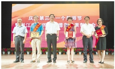 本报讯 记者王海霞 见习记者洪菡婷报道 昨天下午,庆祝第31个教师节暨浙江省第四届师德先进表彰大会在浙江传媒学院隆重举行。
