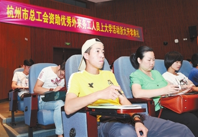 据悉,这已经是杭州市总工会推出“资助优秀外来务工人员上大学”活动的第4个年头了。凡是在杭州市工作,已签订劳动合同,加入工会组织,缴纳6个月以上社会保险,具备有关高等学历教育的报考入学资格条件,年龄在18~45周岁的外来务工人员、工会干部都有机会享受资助。