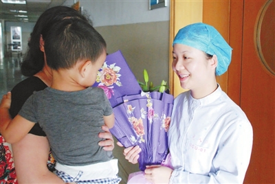 “我是县人民医院的护士,大家散开点,留下空间,抢救病人!”林中鸟大声地说。紧要关头,林中鸟凭借自己的工作经验,判断应该是异物梗阻。便吩咐奶奶从身后抱住孙子,小林熟练地将小男孩双手迅速往上举。做第一次抬举动作时,效果不佳,小男孩反倒脸色更青了,呼吸更急促了。这时,她果断地将男孩的双手高高举起,二次、三次……在小林的努力下,小男孩终于将山竹内核吐了出来。众人纷纷吁了一口气,向她投来赞赏的眼光。