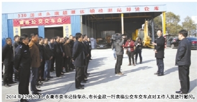 | 2014年12月30日,永康市委书记徐华水、市长金政一行亲临公交车交车点对工作人员进行慰问。 |