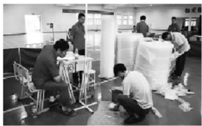 9月19日至20日,浙江省首届快递业务员职业技能竞赛在浙江绍兴举办。来自省内16家快递企业的138名选手同场竞技。竞赛设置了快件收派与快件处理两个模块,每个模块均由理论知识竞赛和实际操作竞赛两部分组成。图为参赛快递业务员(右)对快件进行现场包装,现场裁判(左)近身观察并进行现场评判打分。