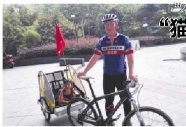在钱江四桥附近,记者见到了齐海亮和他的女儿小六一。父女俩的旅行装备十分简易,一辆改装过的山地自行车,后面拖着一辆二轮的儿童旅行车,这就是六一的座驾。座驾上还飘着一面旗,写着“骑车去罗马”。