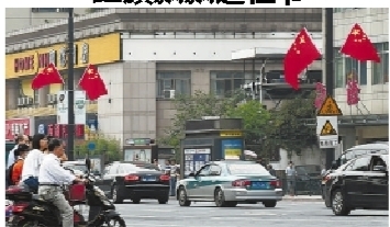 昨天,途经杭州文三路的行人在浓烈的桂花香中,见到了一路迎风飘扬的五星红旗,无不感受到就在眼前的中秋和国庆佳节,透出的欢乐团圆和喜庆热烈气氛。 记者周金友 摄影报道