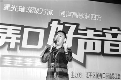 日前,杭州市江干区闸弄口街道总工会举办“第五届闸弄口好声音”,10多位喜爱歌唱的外来务工人员,登上“擂台”放声歌唱,尽情释放热爱生活、热爱家乡、憧憬未来的好心情。