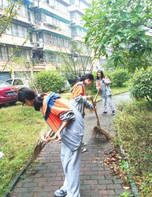 10月6日上午,萧山中学高二(7)班汤思丁等4位女同学自发来到萧山育才东苑小区,为小区人行步道和绿化带搞卫生。汤思丁说,她们通过这种方式来体验劳动者的艰辛,利用长假来做一点有意义的事情。