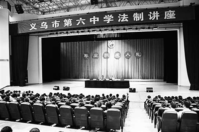 青少年是“六五”普法的重点对象。义乌法院结合自身实际积极开展青少年普法活动,通过选派法制副校长、法治讲座进学校、邀请学生参加法院公开日活动等形式,普及法律常识,鼓励学生养成良好的学习生活习惯,做一个遵纪守法的人。图为法官为高中学生上法制课。 义法陈 摄影报道