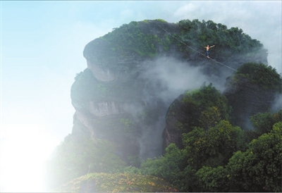 作为本次旅游节活动的“重头戏”,奥地利“蜘蛛侠”迈克·凯米特本计划在9月29日上午徒手攀爬江郎山、高空走扁带跨越两峰、最后从峰顶低空跳伞三项极限挑战活动,但因台风“杜鹃”对浙江影响较大,江郎山景区大风,且下雨致使崖壁湿滑,主办方宣布活动中止,让众多等候在电视机前的观众显得颇为遗憾。