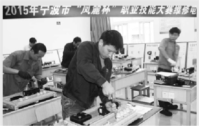 2015年宁波市“凤麓杯”职业技能大赛,日前在奉化市圆满落幕。本次职业技能大赛包括理论知识(闭卷)和技能实操。247名选手报名参赛,其中数控车工66人、维修电工43人、焊工60人、中式烹饪师36人、电子商务42人,经过6天的技能比拼,一批优秀技能人才脱颖而出。通讯员毛立纲 记者周金友 摄影报道