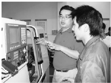 | 宁波市首席工人徐加能现场指导自己的学生徒弟。 |