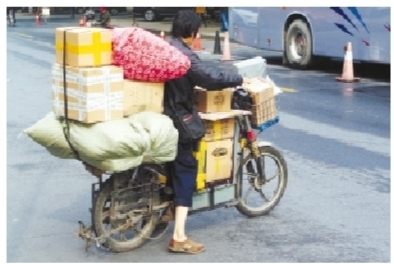 昨天上午,在杭州抚宁巷,一位快递员工骑着满载货物的电动车一路上摇摇摆摆的,让许多人捏了一把汗。疯狂购物的“双十一”近在眼前,承担物流最后一站的快递员工,又将面临最忙最累的时刻,但“活儿”再多也别冒险超载,有关部门更应加大监管力度,切实保障安全。