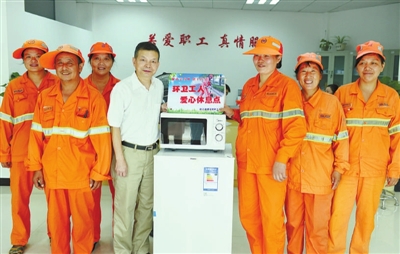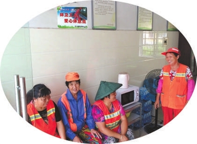 目前,这项活动在省市两级建设工会的共同努力下,出资新建了230个“环卫工人爱心休息点”,遍布全省11个市地的大街小巷,每个休息点都统一配有微波炉、热水壶、电风扇等必要的设施,门口有鲜明的“环卫工人爱心休息点”标识牌。爱心休息点的设置点有银行、药店、社区服务站、餐馆等等,得到了社会各界和各行各业的大力支持,为环卫事业的发展创造良好的社会环境。营造和激发了全社会关爱环卫工人、尊重环卫工人劳动的氛围。今天,就让我们环卫工人走进这230个“环卫工人爱心休息点”,感受那份爱心和温馨……