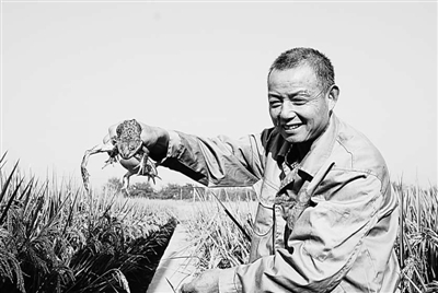 日前,建德市大同镇益明家庭农场主郎益明在金色稻田间,对套养的美国青蛙开始捕捉上市,每公斤价格20元左右。据了解,今年7月初,郎益明在20亩水稻田里采用生态养殖模式进行了“稻蛙共育”技术试验,青蛙饲料以水稻害虫为主要食物,每亩可减少水稻生长周期使用农药3次,可节约成本50元。而青蛙产生的粪便又是天然的有机肥,能够促进水稻生长,提高大米品质,每亩可增收4000元左右。通讯员宁文武 摄影报道