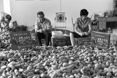 磐安县丰源蔬菜专业合作社基地在大盘镇高山一带,种植高山“迷你”小番薯有着得天独厚的地理优势,今年该合作社种植高山“迷你”小番薯3000多亩,因施农家有机肥料、管理到位,产量高且质量好。产品销往上海、杭州等地市场,颇受消费者青睐。图为日前社员在包装高山小番薯的场景。