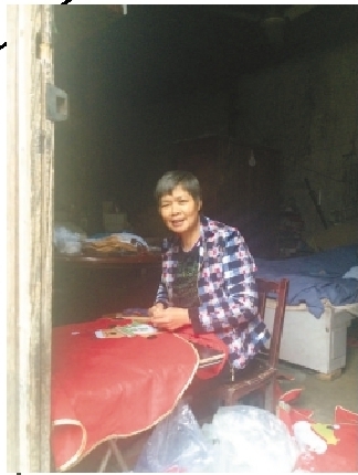 日前,记者走进了羊秋菊的家。羊秋菊正在自家破旧老房子的门口,做着粘贴圣诞礼服上的圣诞老人的外加工活,她丈夫静静地躺在她身后的床上。